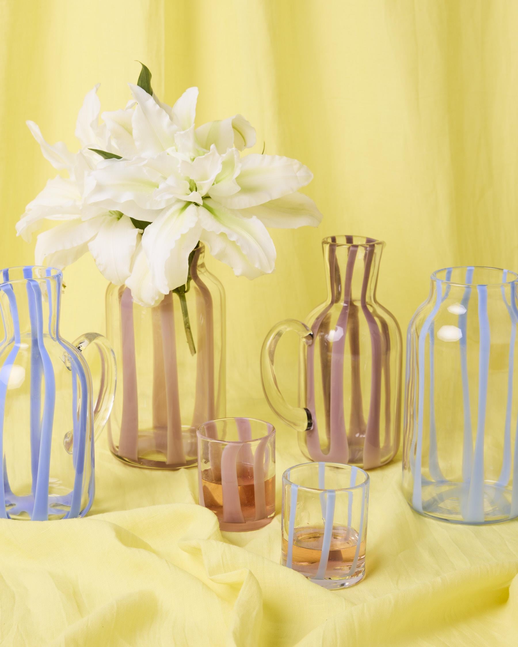Our Oink Stripe Cocktail Glass Set are chunky, cheerful, and decked out in hand-painted pink stripes - perfect for icy drinks, sunny sips, or a cheeky splash of something stronger.